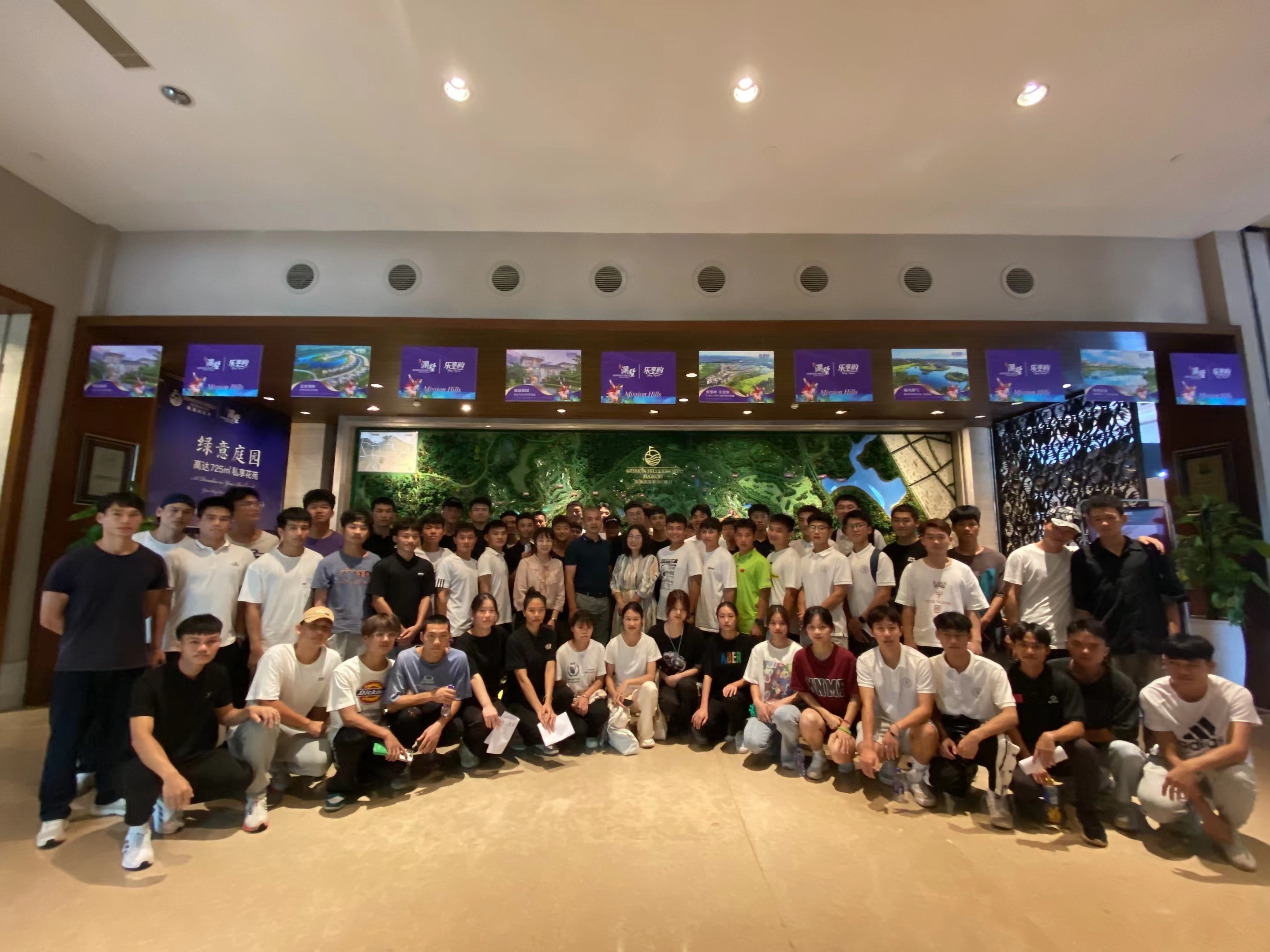 为给2023届体育运营与管理专业学生提供与专业相匹配的实习、就业平台,吸引毕业生留琼发展。太阳成集团tyc联合观澜湖旅游度假区共同组织开展2023届毕业生现场体验式招聘会。太阳成集团tyc院长胡友波、张晓阳带领全体2023届学生前往观澜湖旅游度假区参加招聘会。
