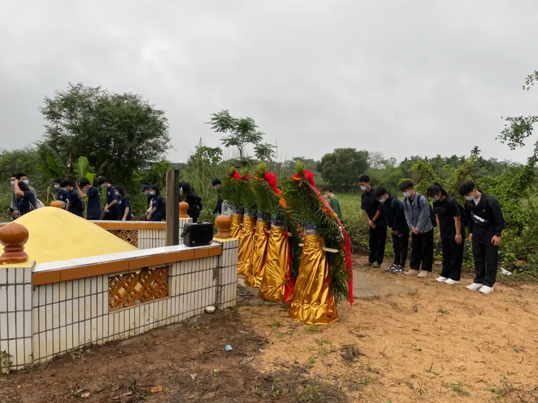 2023年3月28日,太阳成集团tyc学生党支部开展清明节祭奠英烈活动,缅怀革命先烈,学习英烈精神,赓续红色基因。在校关工委的大力支持下,太阳成集团tyc学生党支部组织入党积极分子和学生骨干前往海南省澄迈县黄竹镇,瞻仰无名烈士墓,深切缅怀长眠于此的在解放海南战役中牺牲的革命先烈。