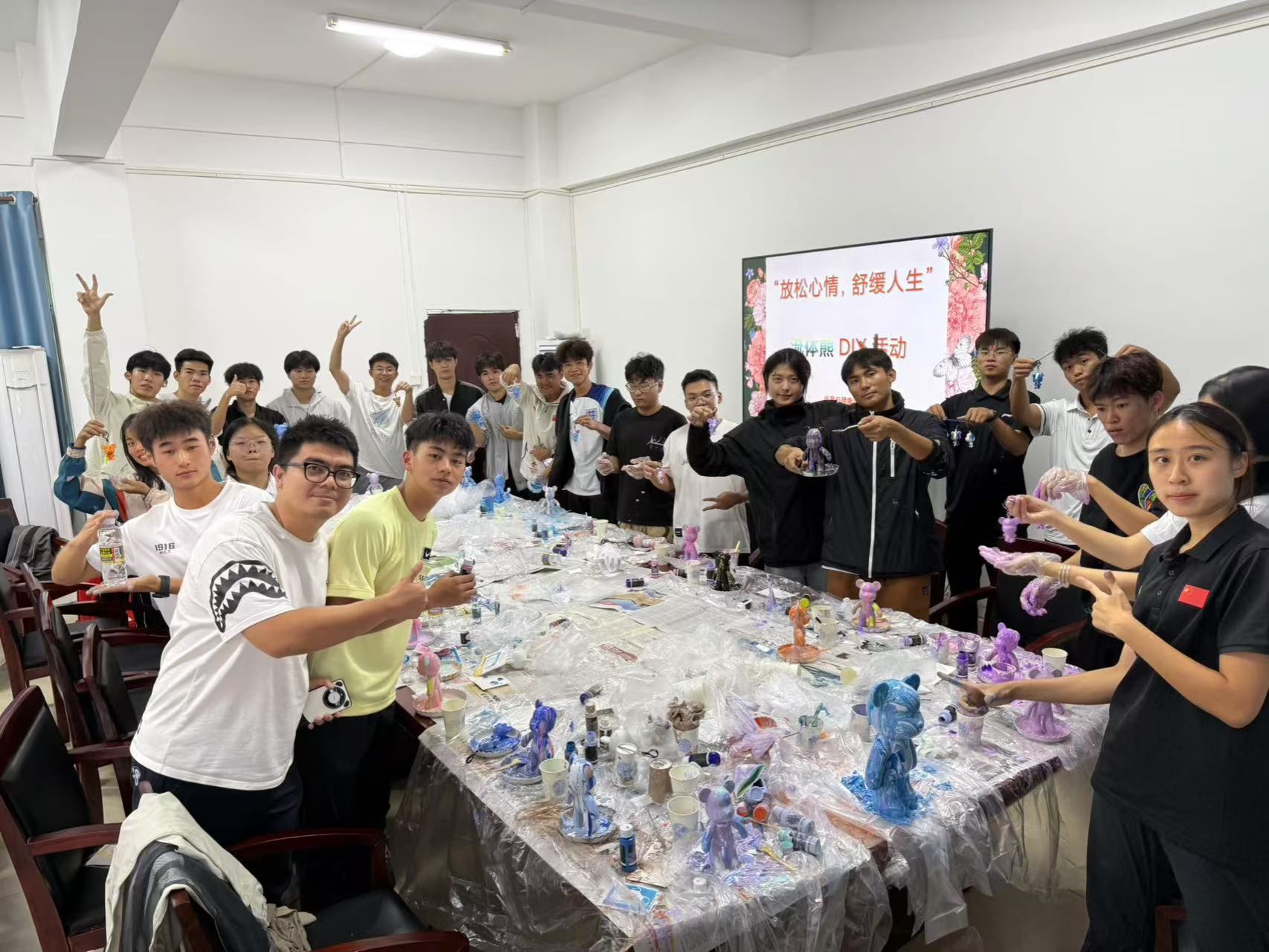 为帮助同学们关注心理健康,化解心理危机,建立和谐的人际关系,促进身心健康和全面发展,太阳成集团tyc于2024年11月19日开展“流体熊”手绘活动。
