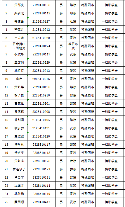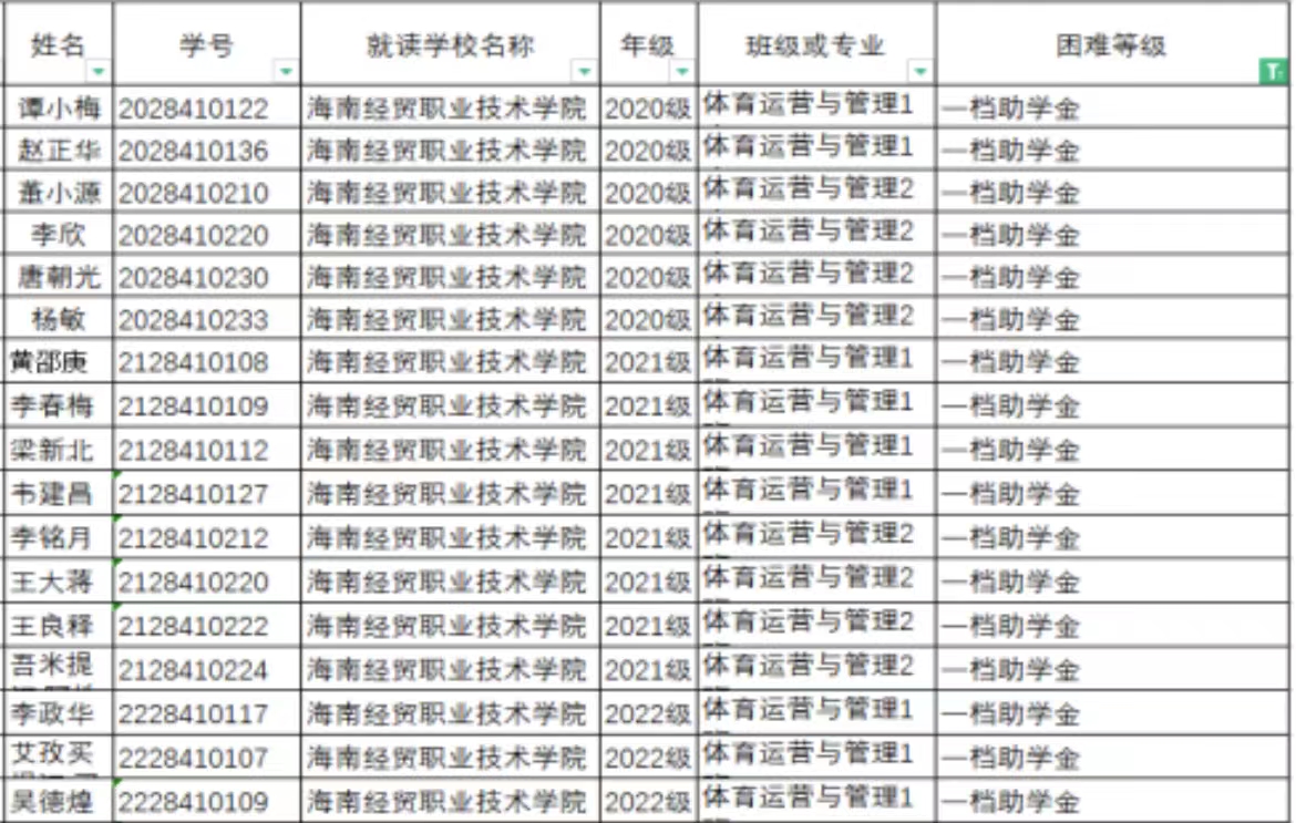 太阳成集团tyc2022-2023学年度国家助学金拟推荐名单公示